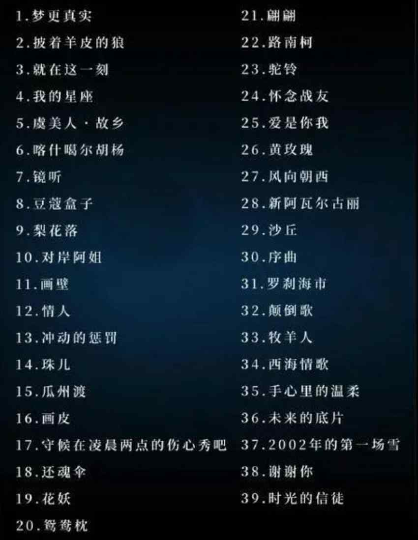 歌單從《夢更真實》開始,《時光的信徒》結(jié)束,中間包括了《羅剎海市》《2002年的第一場雪》等膾炙人口的歌曲共39首,除了中間下雨休息一會,刀郎連續(xù)演唱3個多小時。