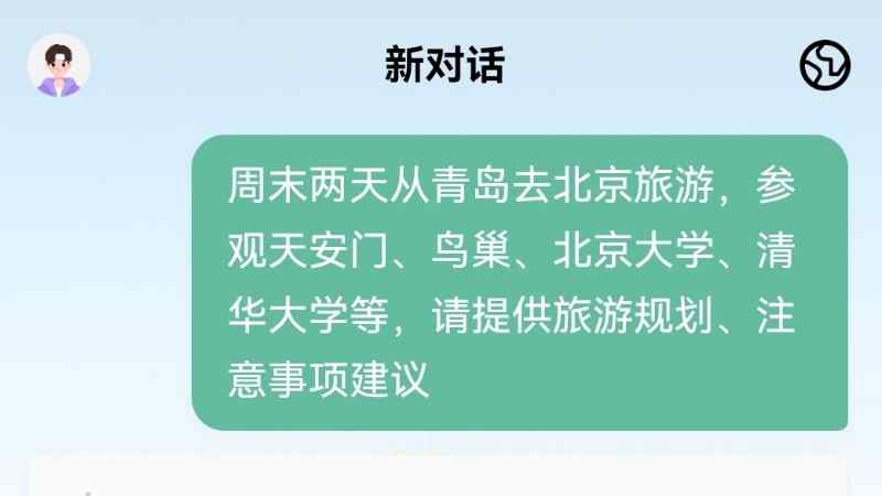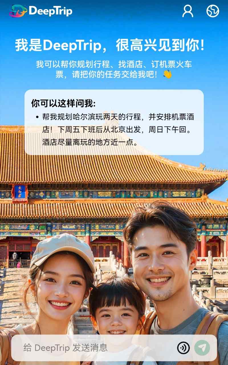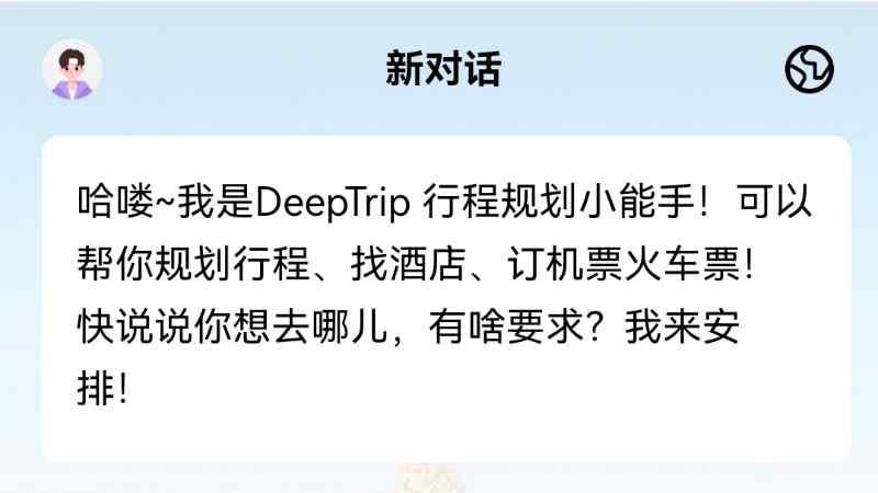 用戶注冊以后,會進入到一個新的對話界面,提示用戶“可以幫助你規劃行程,找酒店、訂機票火車票”。