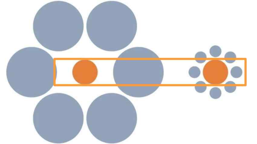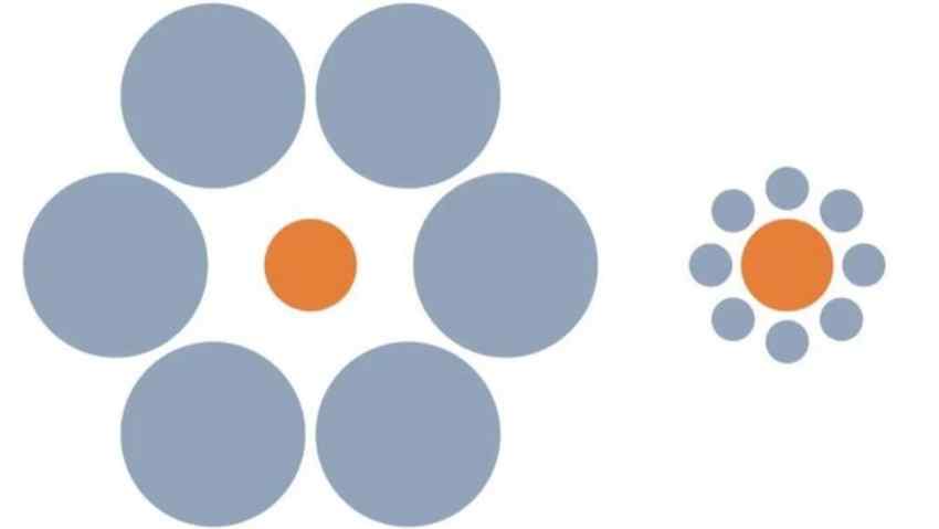 看上去右側(cè)圖中中間的圓要比左側(cè)圖中間的圓大,然而實(shí)際上中間的兩個(gè)圓一樣大。