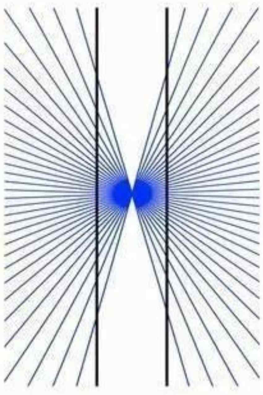 兩條線看上去是向外彎曲的,然而實(shí)際上兩條線都是筆直的,也是平行的。