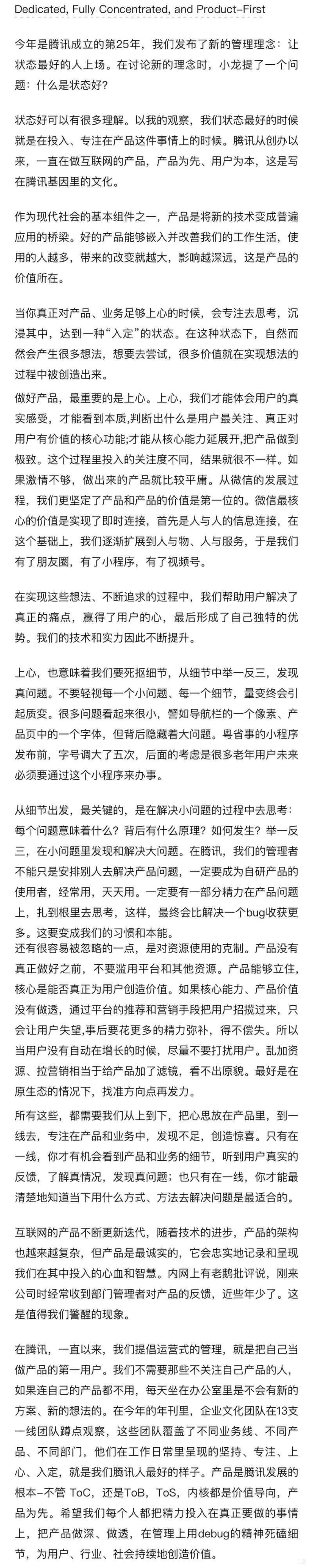 馬化騰在騰訊成立25周年致員工信:上心,專注產(chǎn)品,死扣細(xì)節(jié),到一線去 創(chuàng)未來(lái) 2023-11-04 786 0 騰訊成立25周年,馬化騰內(nèi)部郵件: 互聯(lián)網(wǎng) << 熱烈祝賀祖國(guó)成立七十四周年 強(qiáng)國(guó)建設(shè)·民族復(fù)興·國(guó)泰民安 2024年支付寶圍繞“開放、科技、溫暖”三個(gè)核心理念更換新logo >> 您可以還會(huì)對(duì)下面的文章感興趣: 釘釘——AI時(shí)代的工作方式,釘釘推出了哪些AI功能? OpenAI發(fā)布了一款以ChatGPT為核心構(gòu)建的新型網(wǎng)頁(yè)瀏覽器——ChatGPT Atlas。 國(guó)家網(wǎng)絡(luò)安全事件報(bào)告管理辦法自2025年11月1日起正式施行 2026年3月15日起SSL/TLS證書的最大有效期將從398天逐步縮短至47天 2025年國(guó)際消費(fèi)者權(quán)益日央視315晚會(huì)曝光9大亂象,以及涉事36家企業(yè)名單 刀郎“山歌響起的地方”線上演唱會(huì)觀看超5200萬(wàn)人 點(diǎn)贊超6億次 2024年支付寶圍繞“開放、科技、溫暖”三個(gè)核心理念更換新logo 相關(guān)文章 2025年25位影響力企業(yè)家名單發(fā)布 制造業(yè)企業(yè)家數(shù)量超過(guò)一半 英偉達(dá)2025年第三季度營(yíng)收全面超預(yù)期 營(yíng)收570.1億美元 凈利潤(rùn)319.1億美元 我國(guó)前三季度國(guó)內(nèi)生產(chǎn)總值(GDP)實(shí)現(xiàn)101.5萬(wàn)億元,同比增長(zhǎng)5.2% 華為云部分項(xiàng)目虛增收入、夸大進(jìn)展,CEO和其他三名業(yè)務(wù)高管被問(wèn)責(zé) 福耀玻璃曹德旺辭任董事長(zhǎng)職務(wù) 選舉曹暉為公司第十一屆董事局董事長(zhǎng) 英偉達(dá)有意將逐步向OpenAI投資至多1000億美元 用于支持?jǐn)?shù)據(jù)中心及相關(guān)基礎(chǔ)設(shè)施建設(shè) 國(guó)家網(wǎng)絡(luò)安全事件報(bào)告管理辦法自2025年11月1日起正式施行 小米將于5月22日召開“小米戰(zhàn)略新品發(fā)布會(huì)”:發(fā)布3nm制程芯片玄戒等