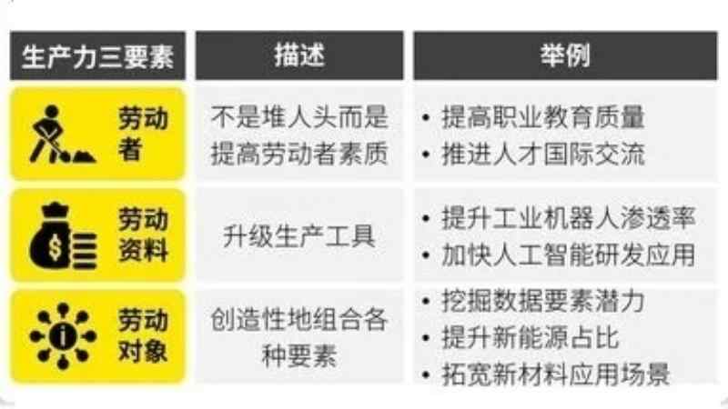新質生產力的三要素也包括勞動者、勞動資料、勞動對象。但是新質生產力的三個要素與傳統生產力的三要素存在一些本質上的差別。