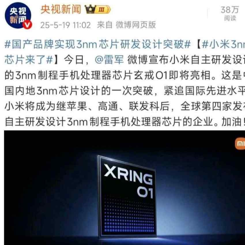 對(duì)小米本次要發(fā)布3nm制程的先進(jìn)芯片,央視新聞也進(jìn)行了轉(zhuǎn)發(fā)和表揚(yáng)。其中提到小米要發(fā)布的玄戒O13nm制程處理器,是國內(nèi)3nm芯片設(shè)計(jì)的一次突破,緊追國際先進(jìn)水平,小米公司將是全球第四家發(fā)布自主研發(fā)設(shè)計(jì)3nm制程手機(jī)處理器的企業(yè)。